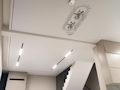 И накладные, и встраиваемые светильники имеют свои преимущества. Первые отличаются привлекательным видом и простой установкой без повреждения полотна. При необходимости их можно перемещать для изменения подсветки в помещении, расставляя акценты или зонируя пространство.
